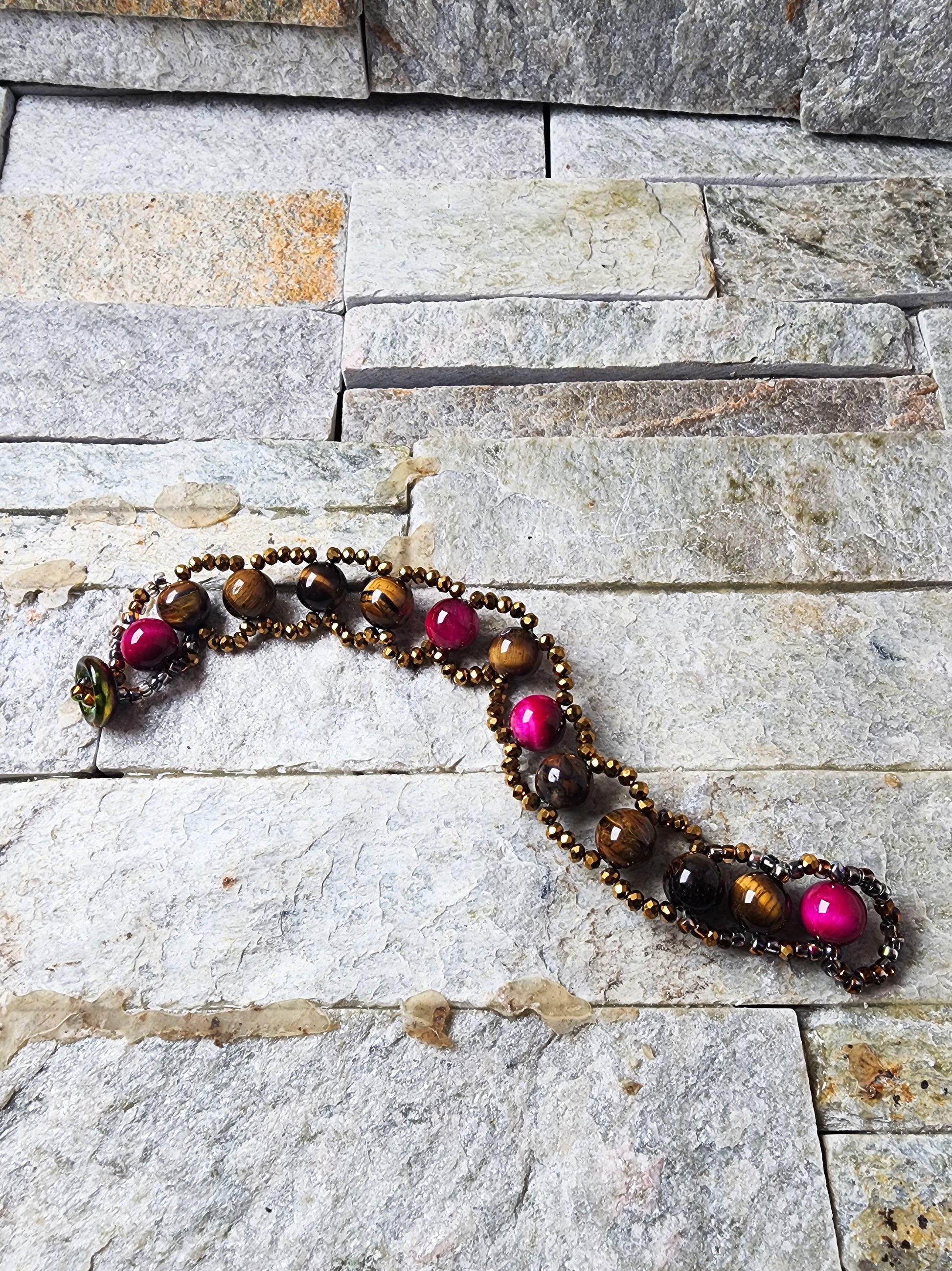 Elevate your style with the exquisite 'Aesha' handmade bracelet—a testament to elegance and artistry. Meticulously crafted with attention to detail, this bracelet embodies the epitome of grace and sophistication. Each delicate stitch and carefully selected element showcases the dedication and craftsmanship poured into this piece. 'Aesha' isn't just an accessory; it's a statement—a blend of elegance and intricate artistry, designed to adorn your wrist with timeless grace.