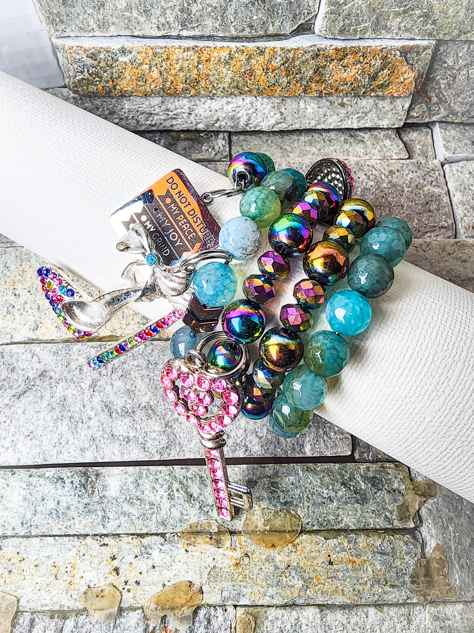 Was it the pink rhinestone key or the rainbow rhinestone heel that attracted you to this piece? Or maybe it was the pink rhinestone heart. Or possibly it was the gorgeous Agate stone. Animated requests that you do not disturb my peace, joy, grind, or vibe. Rainbow Hematite always highlights even when that was not the intention.
