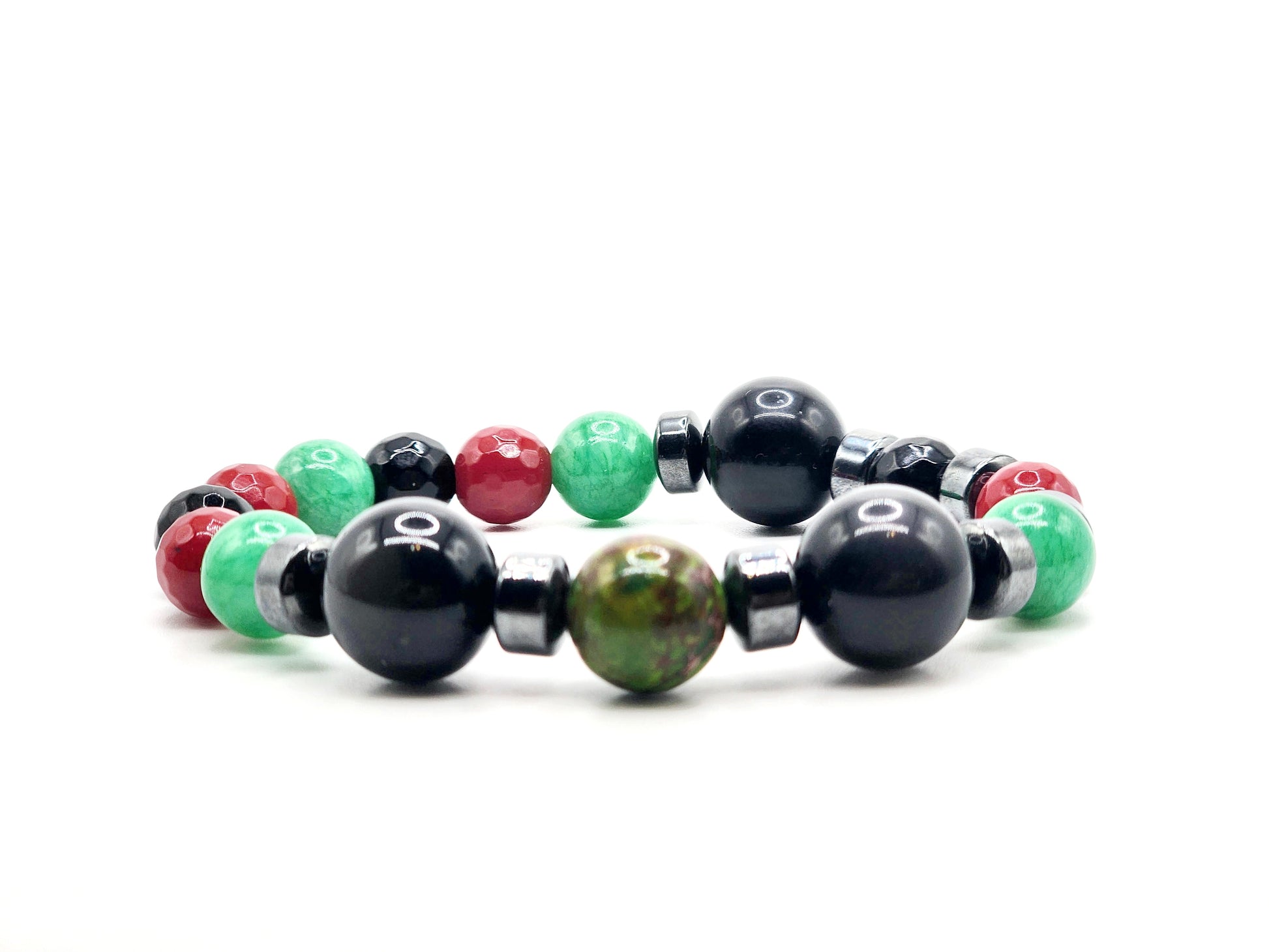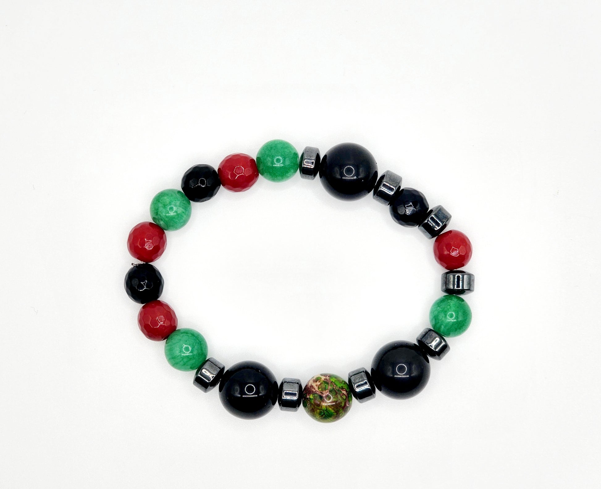 Imperial Jasper, Jade, Tiger's Eye and Hematite.