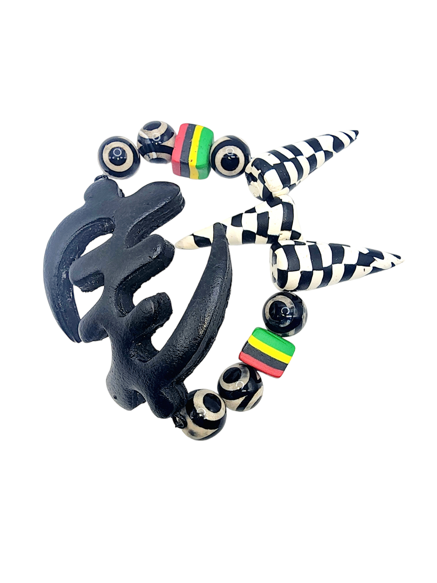 Our unorthodoxed polymer clay bracelets mixed with gemstone crystals are a sensory experience – a touch of earth, a hint of the cosmos, and a dash of unmatched artistry.