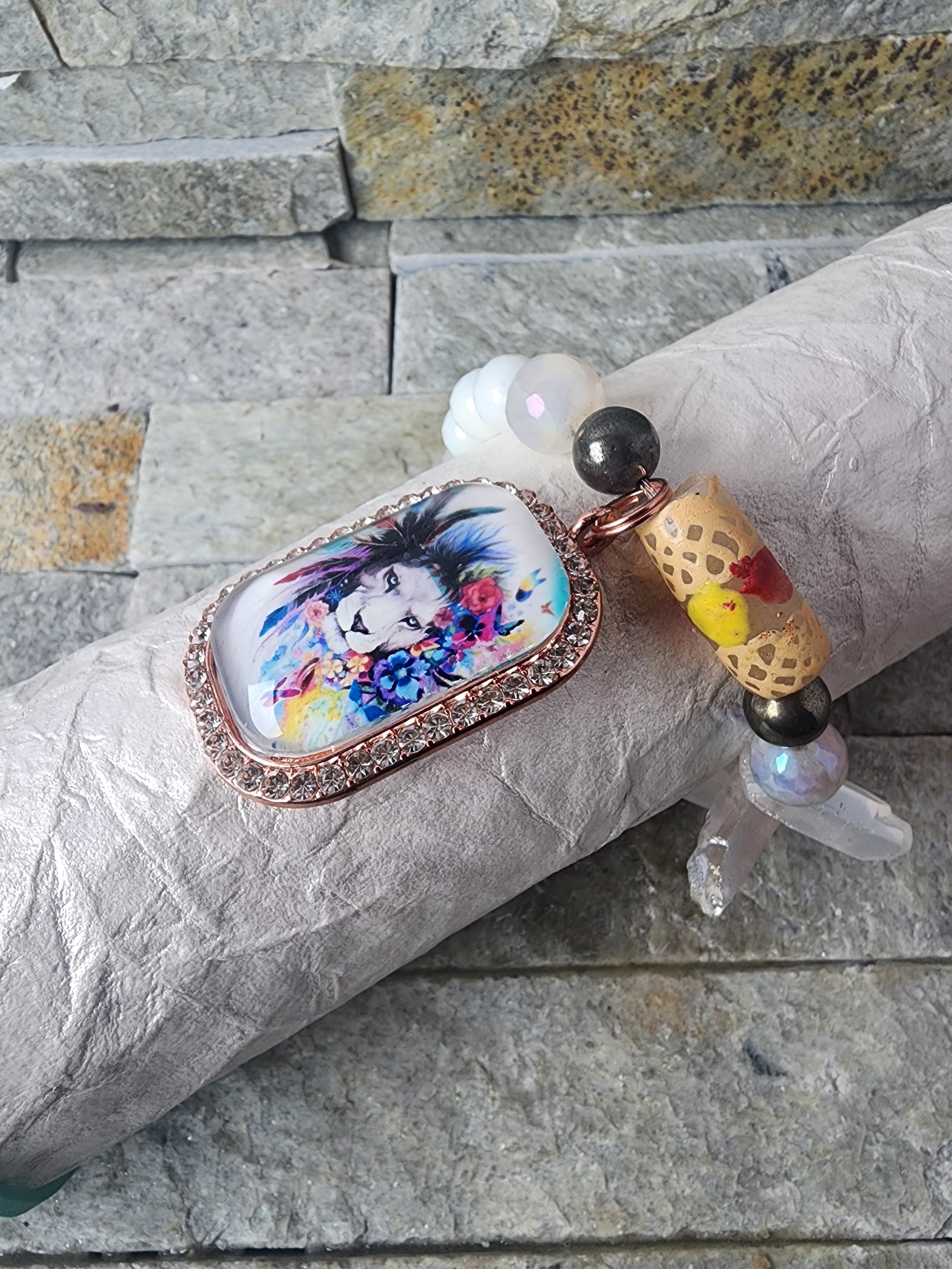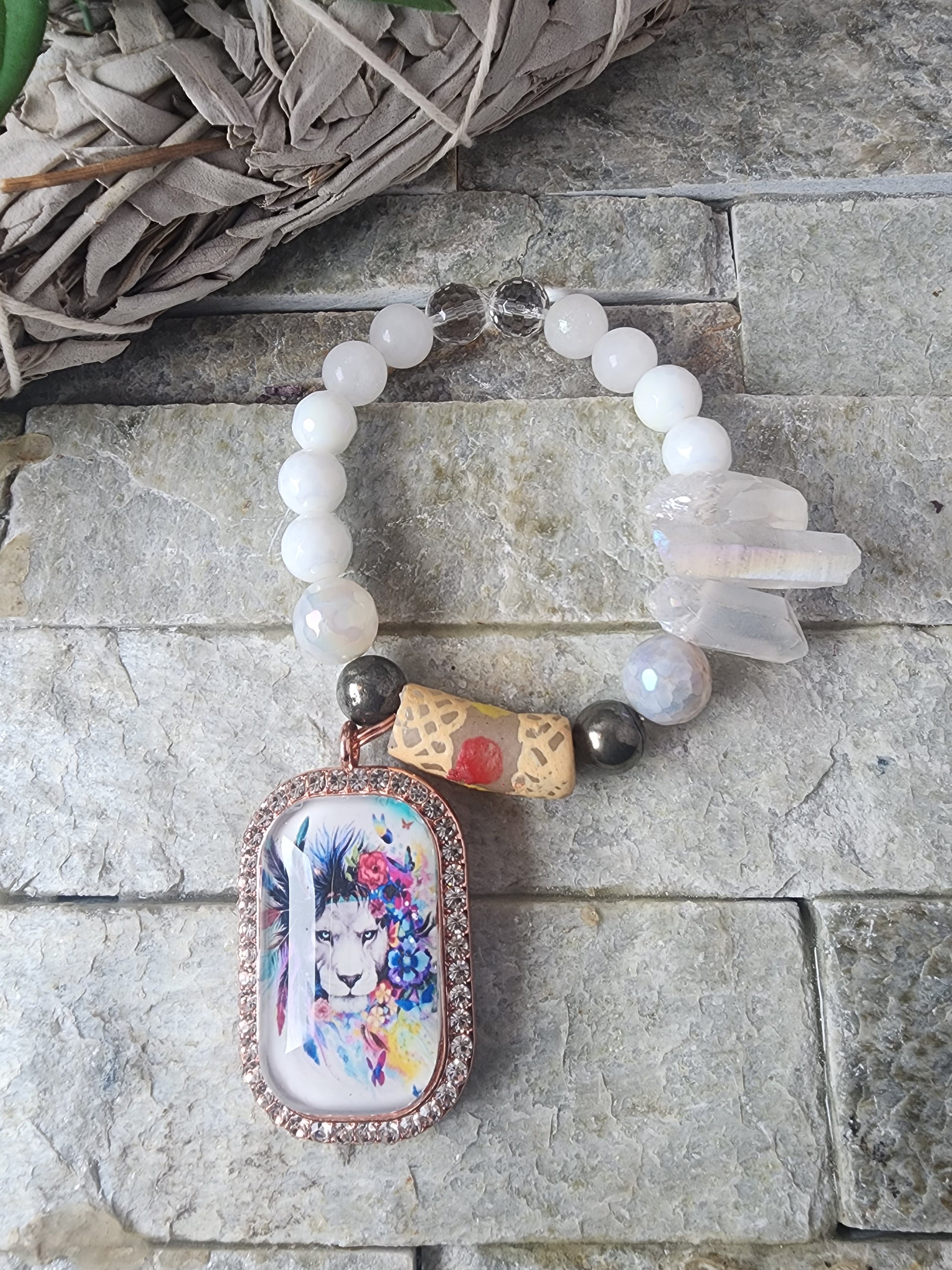 This design was created using a plethora of Clear Quartz, Agate, Copper Pyrite & Jade crystals.