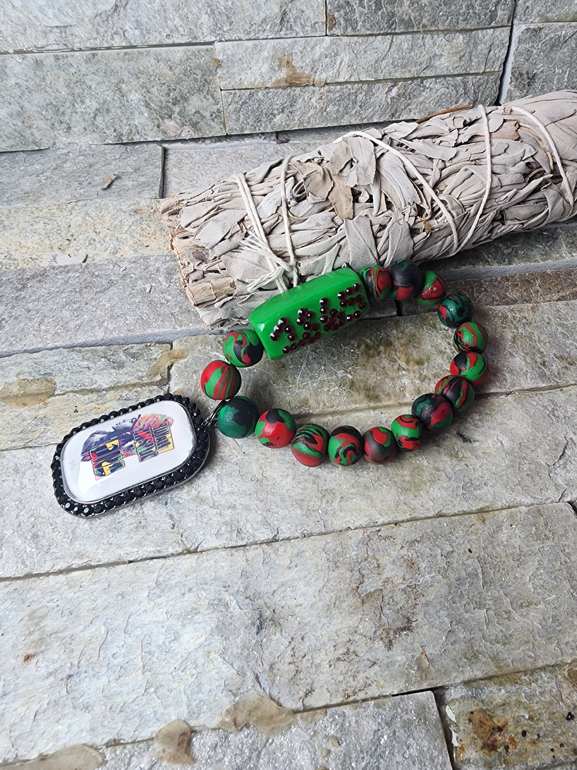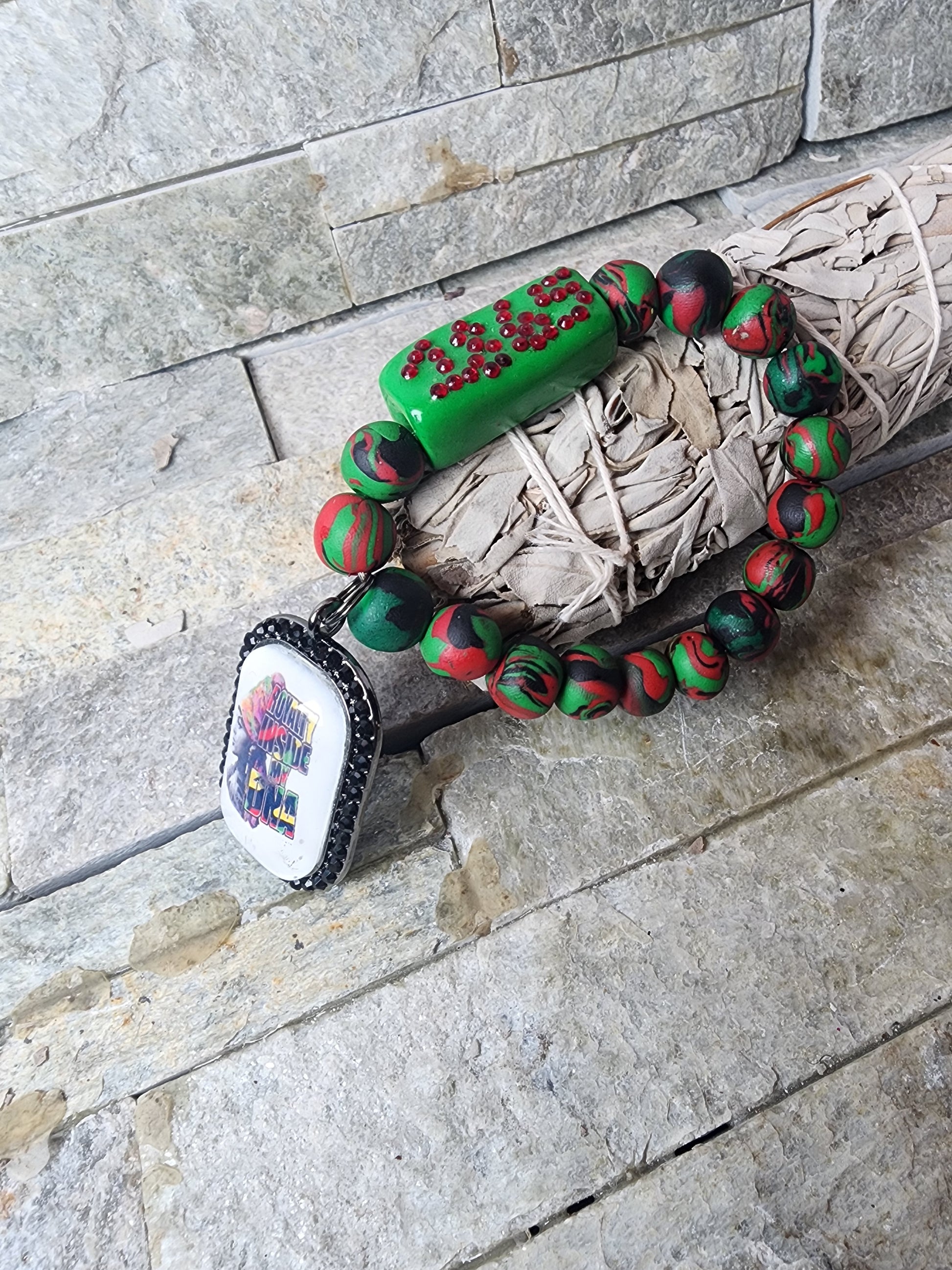 Dive into a vibrant celebration of heritage and creativity with our handmade polymer clay bracelets. Radiating with the proud Pan African colors of red, black, and green, each bracelet is an unorthodoxed masterpiece, seamlessly blending traditional hues with avant-garde design.