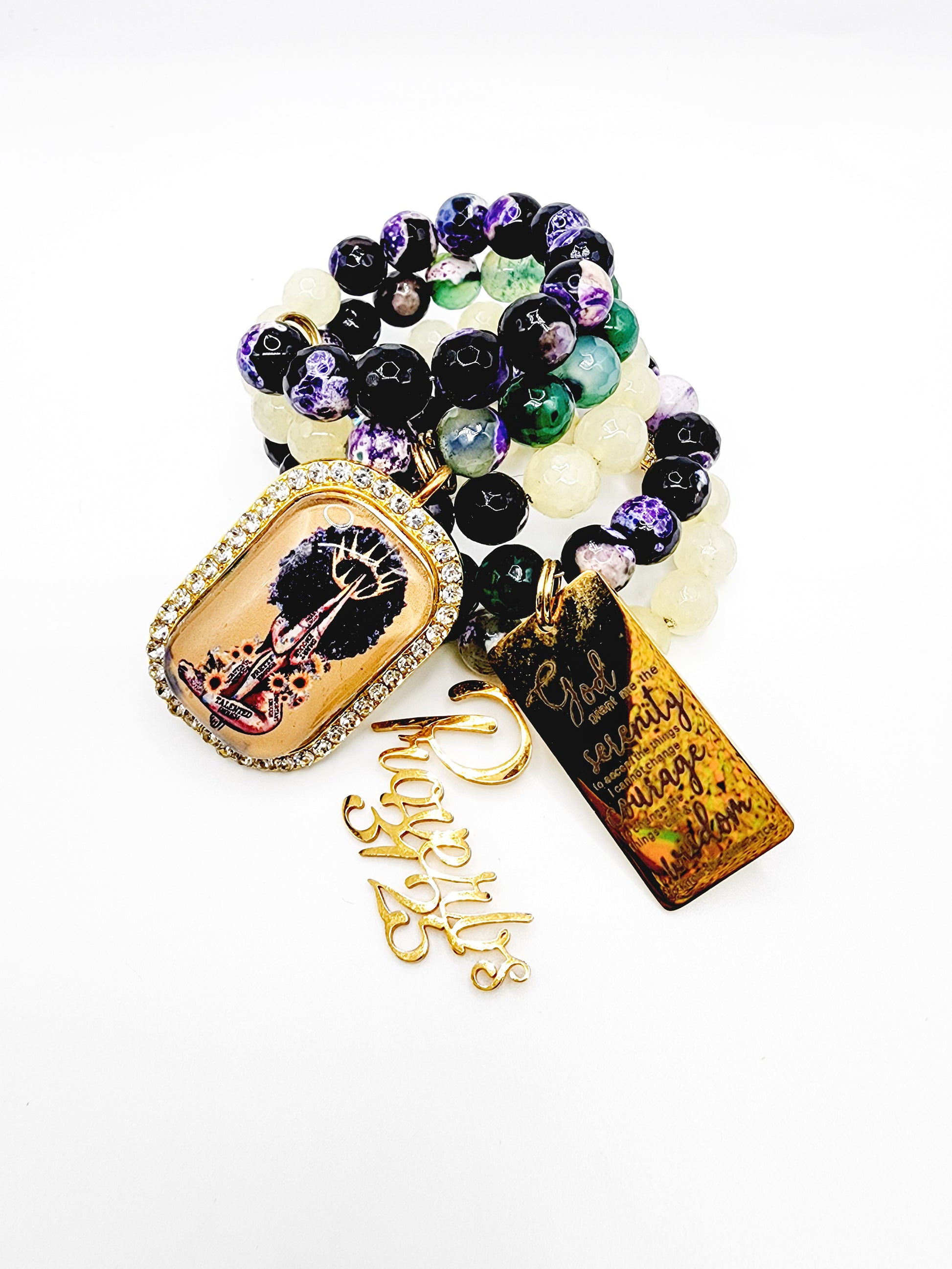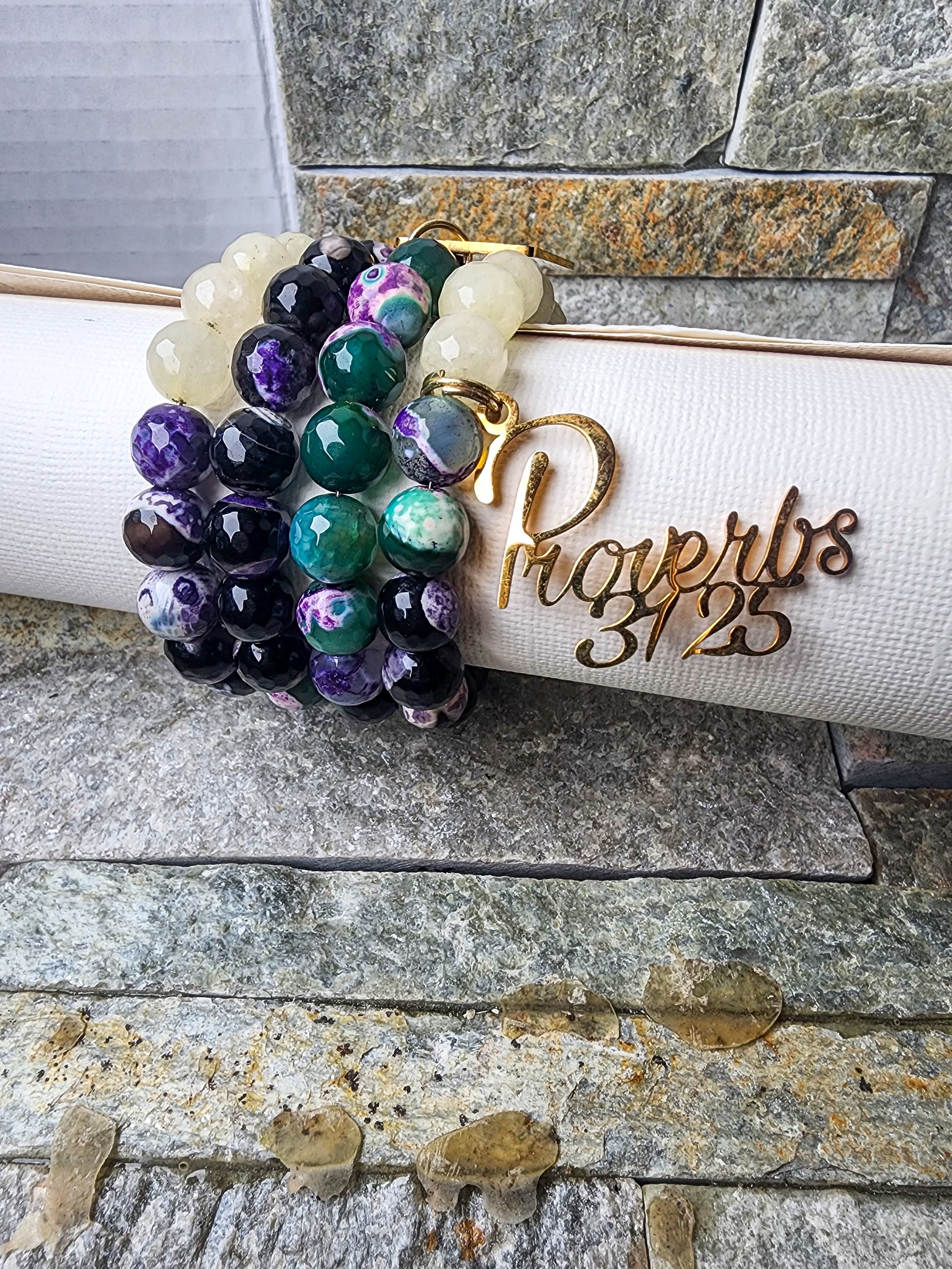 Proverbs : Wire-Wrapped Green and Purple Agate Bracelet