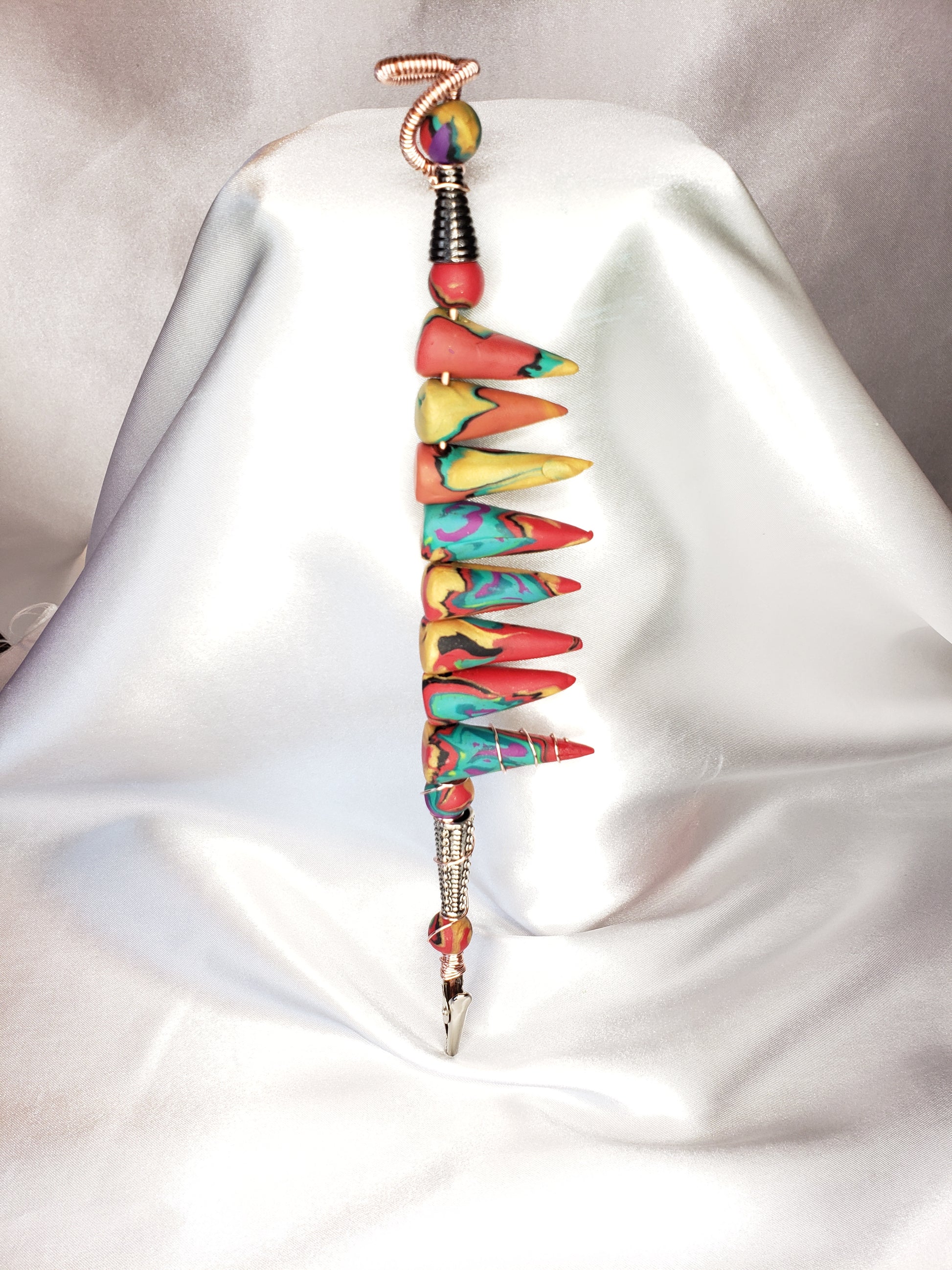 A SPIKED STILETTO PRODUCTION. Weed clip created out of Polymer Clay coupled with a mini Wire-Wrapped handle.